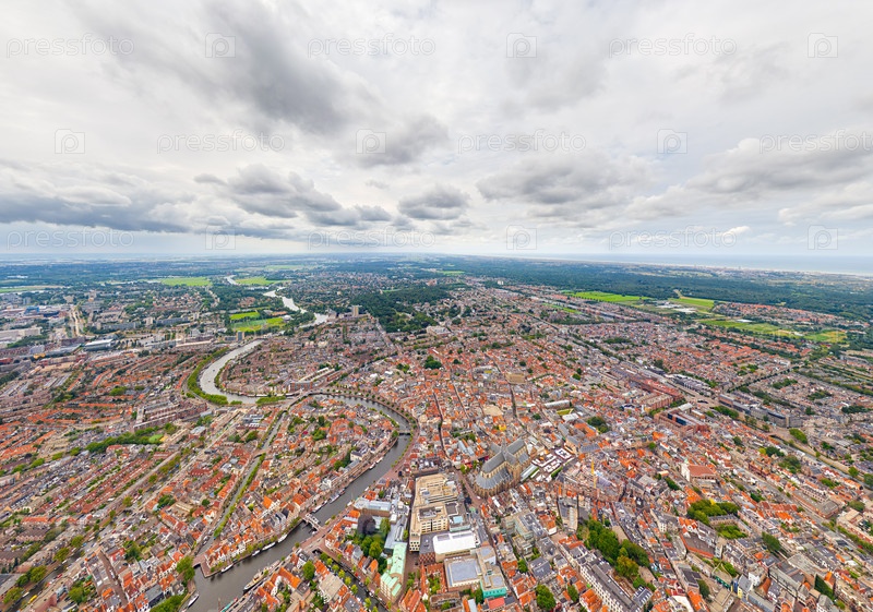 Харлем, Нидерланды. Панорама города летом в пасмурную погоду. Вид с воздуха
