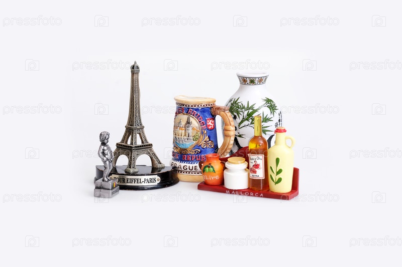 Туристические сувенирные магниты из разных стран изолированы на белом фоне