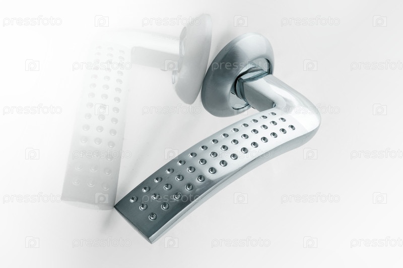 Серебряная дверная ручка изолирована на белом фоне
