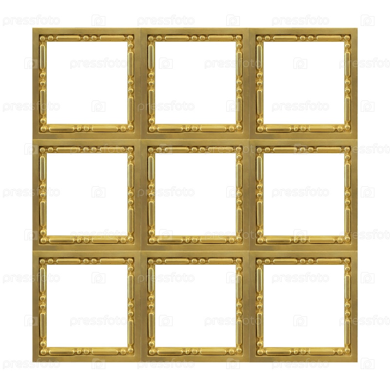 Золотой каркас (полиптих) для картин, зеркал или фотографий, изолированных на белом фоне