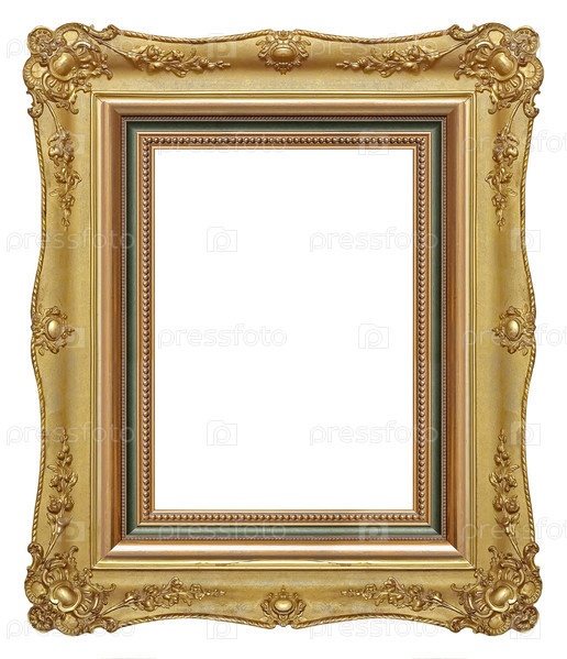 Золотая рама для картин, зеркал или фотографий, изолированных на белом фоне. Элемент дизайна с обрезкой пути
