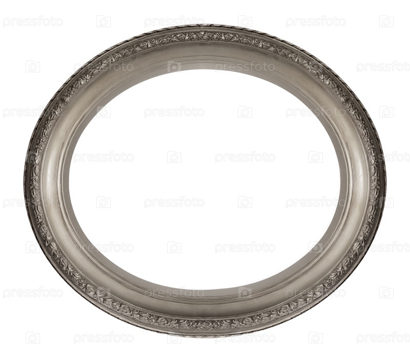 Серебряный овальный каркас для картин, зеркал или фотографий, изолированных на белом фоне