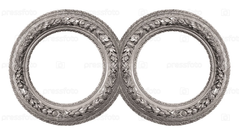Двойная серебряная рама (диптих) для картин, зеркал или фотографий, изолированных на белом фоне