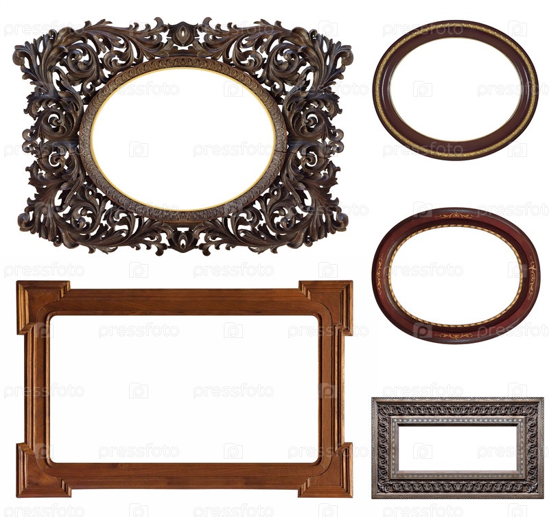 Набор деревянных рам для картин, зеркал или фотографий, изолированных на белом фоне