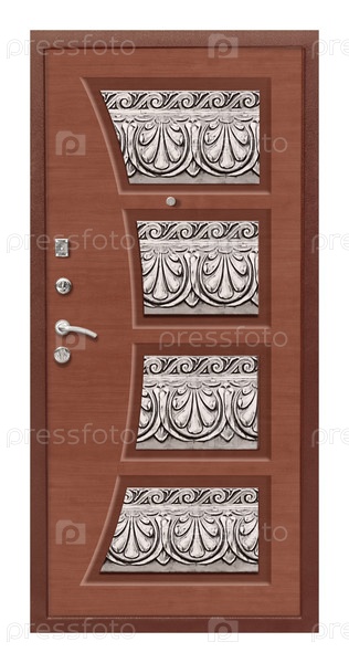Модель входной металлической двери изолирована на белом фоне