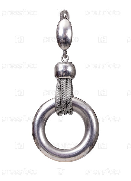 Серебряная круглая серьга на белом фоне
