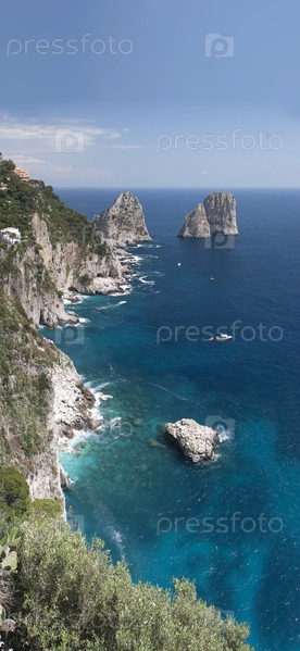 Захватывающий панорамный вид на береговую линию острова Капри с высокой точки зрения