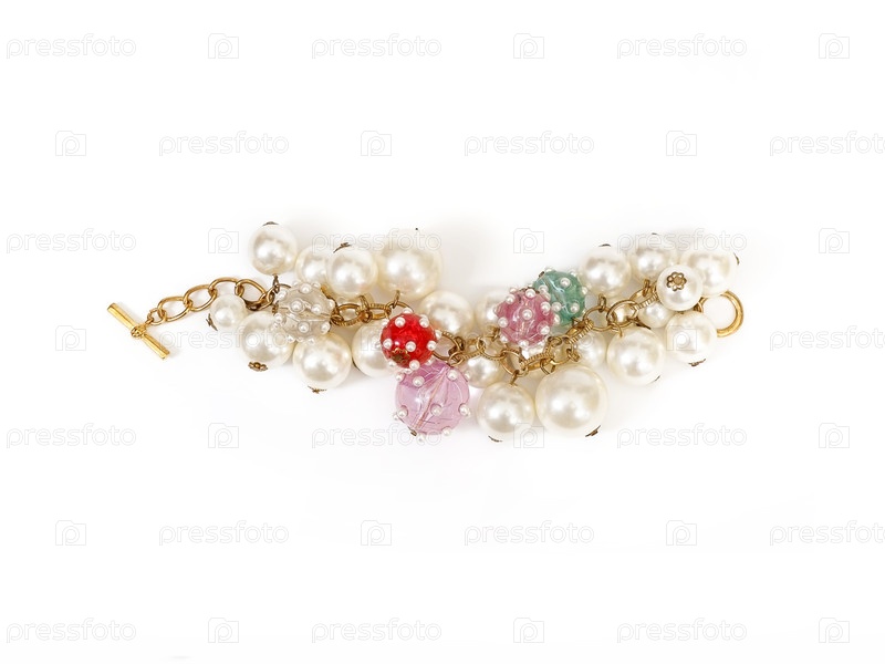 Женский браслет из искусственного жемчуга изолирован на белом фоне