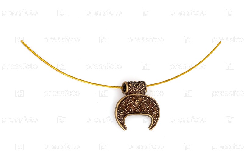 Старинное бронзовое ожерелье с символическим изображением, изолированное на белом фоне
