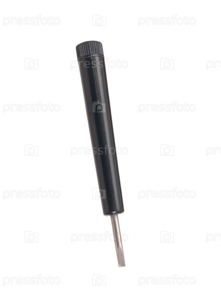 Маленькая черноручная отвертка для чертежных инструментов, изолированная на белом фоне, вырез готов. Чрезвычайно высокое разрешение