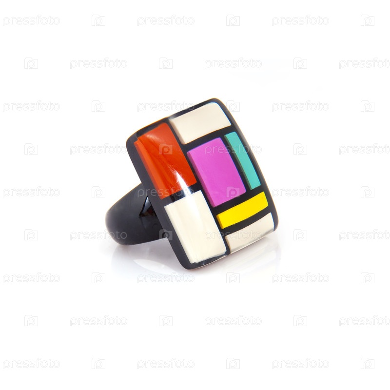 Яркое пластиковое дизайнерское кольцо изолировано на белом фоне