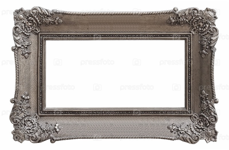 Панорамная серебряная рама для картин, зеркал или фотографий, изолированных на белом фоне, вырез готов