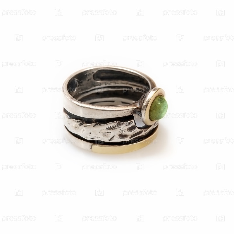 Золотое кольцо с драгоценным камнем, изолированным на белом фоне