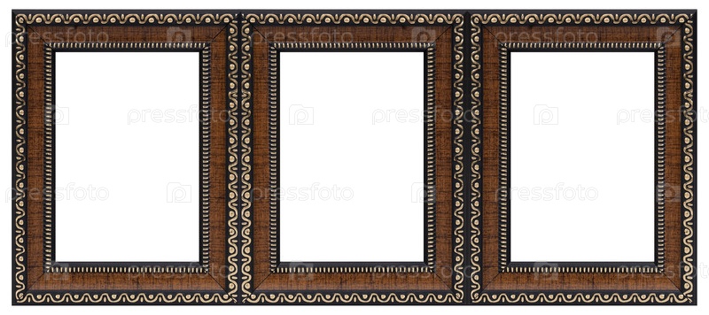 Тройной деревянный каркас (триптих) для картин, зеркал или фотографий, изолированных на белом фоне. Элемент дизайна с обрезкой пути