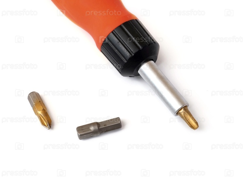Ручные инструменты для ремонта и монтажа: отвертка со сменными наконечниками изолирована на белом фоне