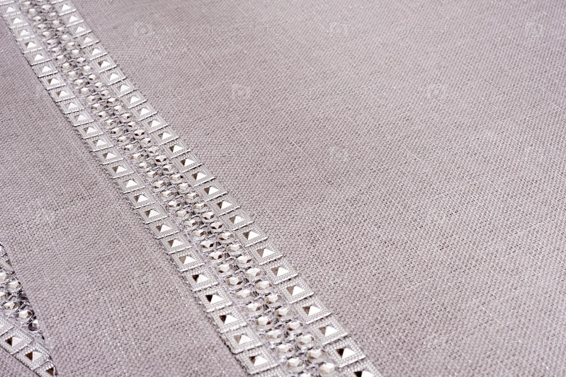 Изолированная серая льняная салфетка с камнями для установки стола