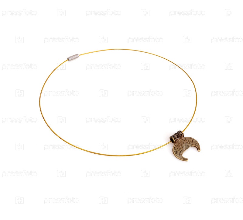 Старинное бронзовое ожерелье с символическим изображением, изолированное на белом фоне