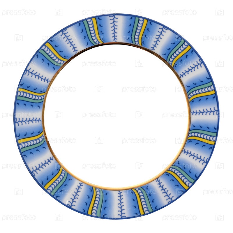 Круглая фарфоровая пластина с средиземноморским орнаментом изолирована на белом фоне