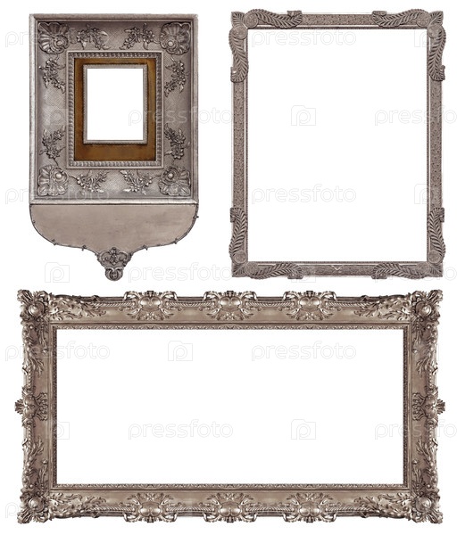 Набор серебряных рам для картин, зеркал или фотографий, изолированных на белом фоне