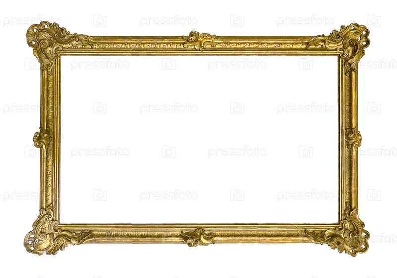 Панорамный золотой каркас для картин, зеркал или фотографий, изолированных на белом фоне, вырез готов