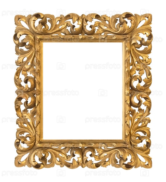 Золотая рама для картин, зеркал или фотографий, изолированных на белом фоне. Элемент дизайна с обрезкой пути