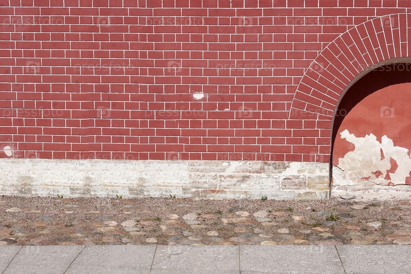Текстура глубокой красной кирпичной стены с белой штукатуркой и декоративной аркой для фона