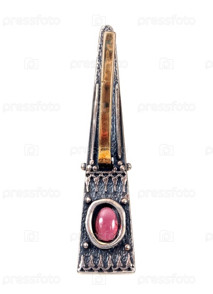 Серебряная серьга с драгоценными камнями на белом фоне