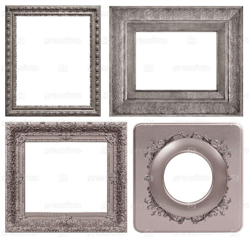Набор серебряных рам для картин, зеркал или фотографий, изолированных на белом фоне