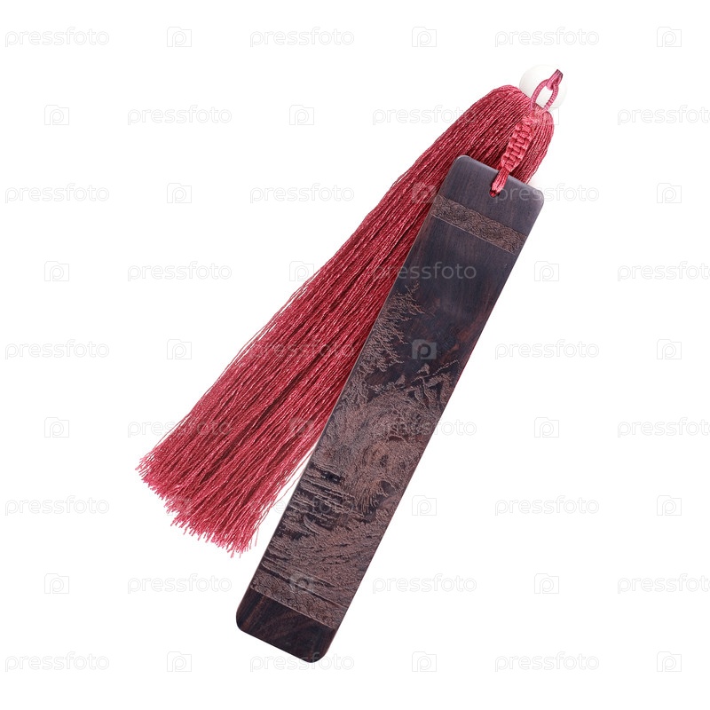 Китайская классическая деревянная закладка с шелковой кисточкой, изолированной на белом фоне
