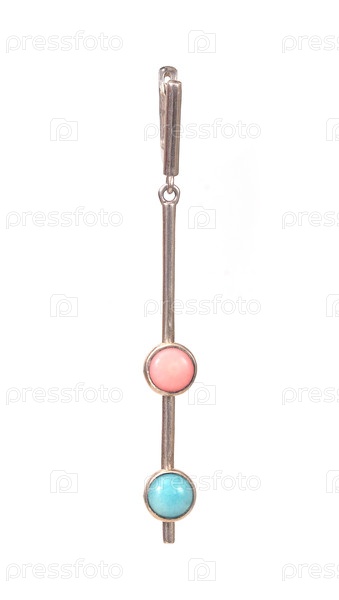 Серебряная серьга с драгоценными камнями на белом фоне