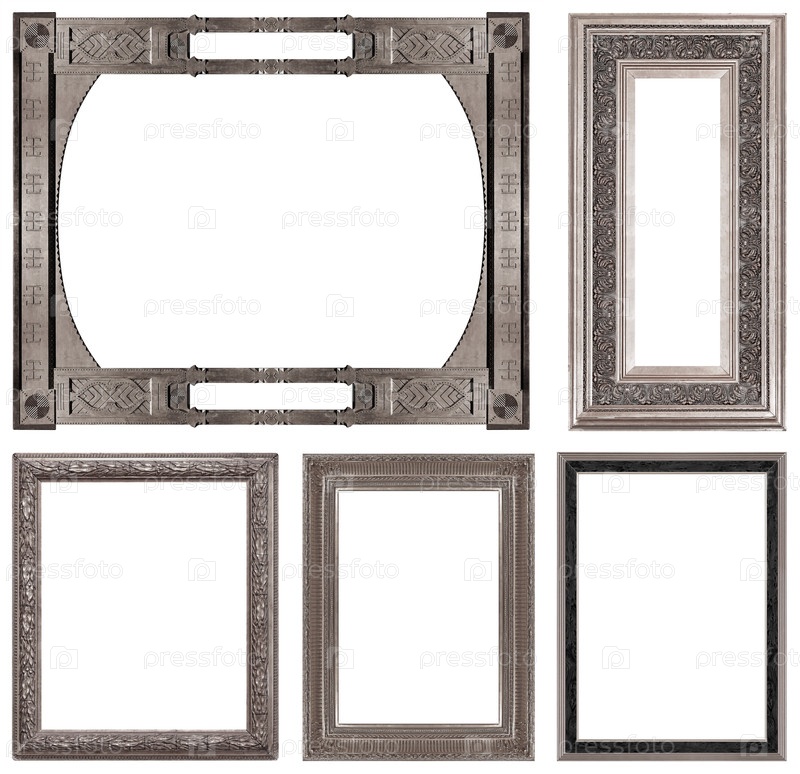 Набор серебряных рам для картин, зеркал или фотографий, изолированных на белом фоне