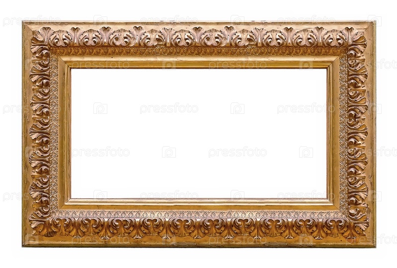 Панорамный золотой каркас для картин, зеркал или фотографий, изолированных на белом фоне, вырез готов