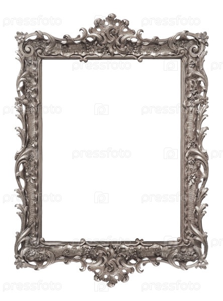 Серебряный каркас для картин, зеркал или фотографий, изолированных на белом фоне, вырез готов