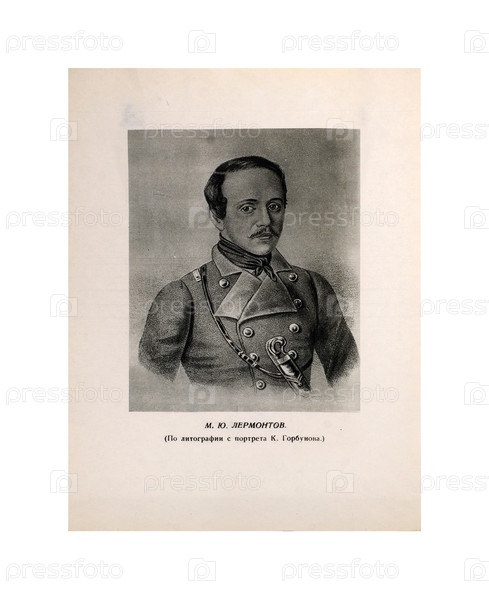 Книга 1941, Москва, «Песня купца Калашникова». Портрет Михаила Лермонтова, литография. Русская надпись означает «М. Лермонтов, основанный на литографии с портрета Горбунова»