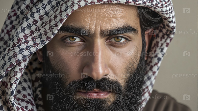 Средневосточный мужчина в традиционном узоре кеффия в помещении