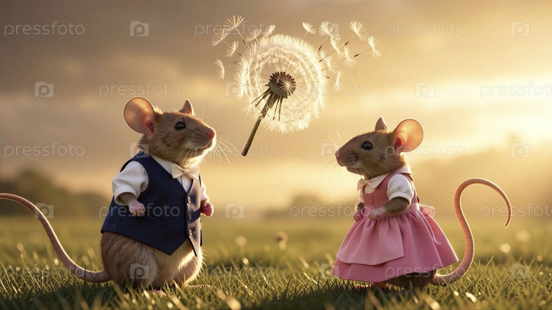 Две мыши в любви под одуванчиком