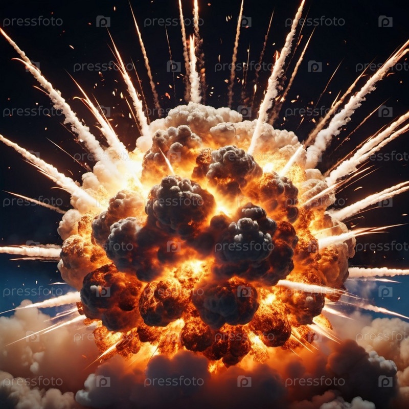 Ядерный взрыв — это процесс высвобождения большого количества тепловой и лучистой энергии в результате неконтролируемой цепной реакции ядерного деления за очень короткое время. Сгенерированный ИИ. Термоядерный синтез