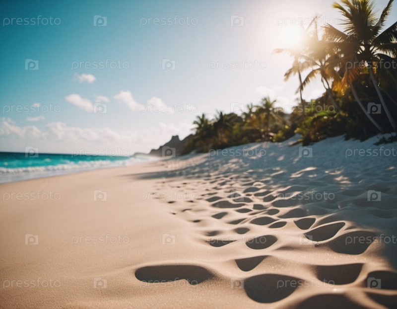 Серена пляжная сцена с нежными волнами, песчаной береговой линией и пальмами, отбрасывающими тени. Яркие цвета и мягкие мазки создают спокойную атмосферу. Генерированный ИИ. Солнечные пляжные каникулы
