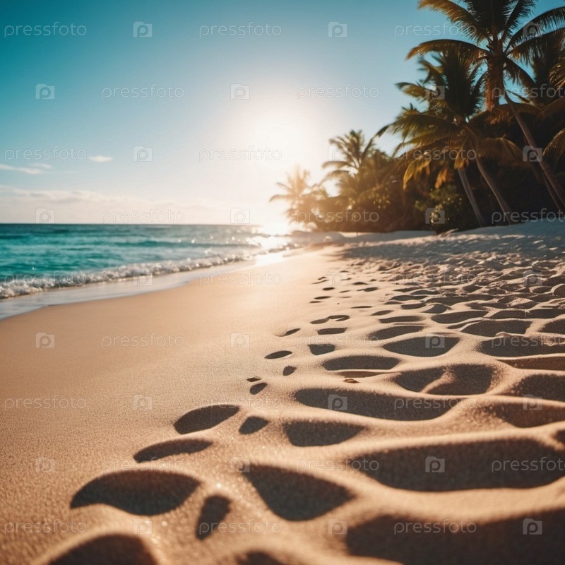 Серена пляжная сцена с нежными волнами, песчаной береговой линией и пальмами, отбрасывающими тени. Яркие цвета и мягкие мазки создают спокойную атмосферу. Генерированный ИИ. Солнечные пляжные каникулы