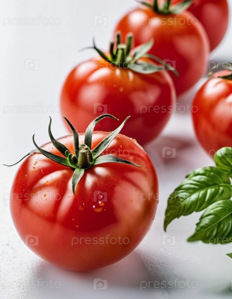 Группа спелых, красных помидоров. Помидоры расположены в кластере. Свет захватывает поверхность томатов, выделяя их яркий цвет и блестящую текстуру. Их недавно собрали. Сгенерированный ИИ