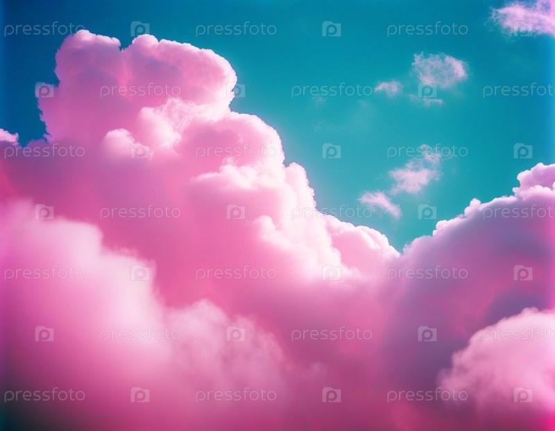Прекрасный вид на розовые облака в ярком закате неба. Облака пушистые и полны света, создавая потрясающий визуальный дисплей. Драматические нереальные небеса с кучевыми и стратовыми облаками в атмосфере. Искусство