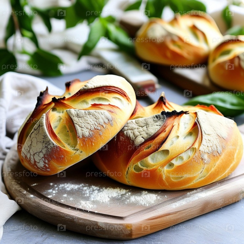 Красиво обработанная круглая буханка хлеба выходит из духовки, ее золотая корка сверкает семенами кунжута. Теплый приглашающий хлеб сидит на деревянной доске, излучая утешительный аромат, который наполняет деревенскую кухню
