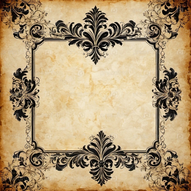 Созданный винтажный дизайн свитка, цветочные границы. Справочная информация демонстрирует текстурированный, устаревший внешний вид бумаги, придающий классический вневременный вид. Приглашение, объявление или декоративные канцелярские принадлежности. ИИ. б