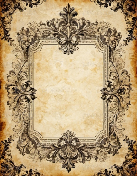Созданный винтажный дизайн свитка, цветочные границы. Справочная информация демонстрирует текстурированный, устаревший внешний вид бумаги, придающий классический вневременный вид. Приглашение, объявление или декоративные канцелярские принадлежности. ИИ. б