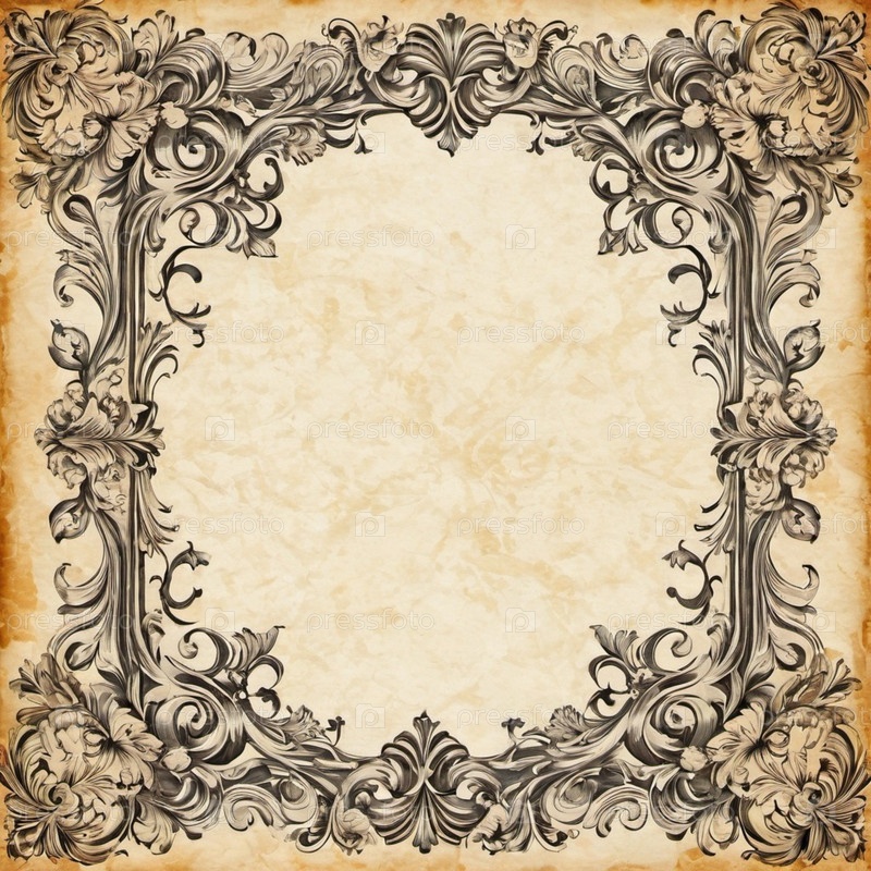 Созданный винтажный дизайн свитка, цветочные границы. Справочная информация демонстрирует текстурированный, устаревший внешний вид бумаги, придающий классический вневременный вид. Приглашение, объявление или декоративные канцелярские принадлежности. ИИ. б