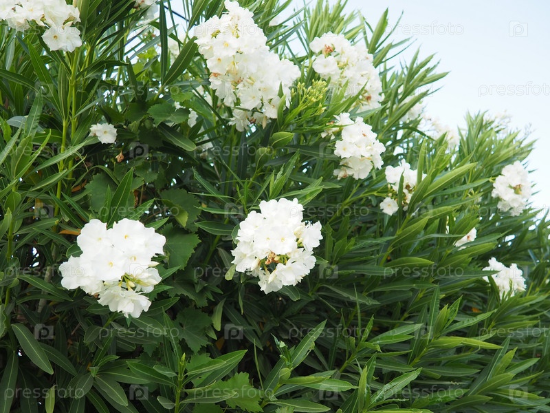 Нериевый олеандр, розовый залив, выращиваемый во всем мире в умеренных и субтропических районах в качестве декоративного и ландшафтного растения. Genus Nerium, Apocynoideae, Apocynaceae. Черногория, Адриатика, Средиземноморье