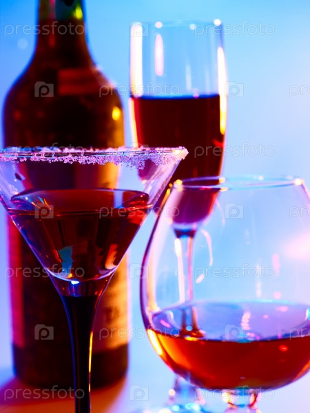 Бокалы с напитками и бутылка