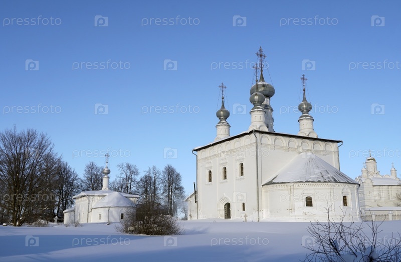 Суздаль. Петропавловская церковь. Церковь Петра и Павла у Покровского монастыря в солнечный, зимний день