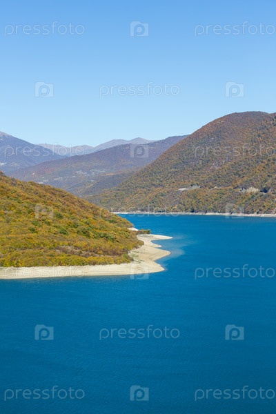 Жинвальское водохранилище - искусственное озеро, расположенное на реке Арагви в горах