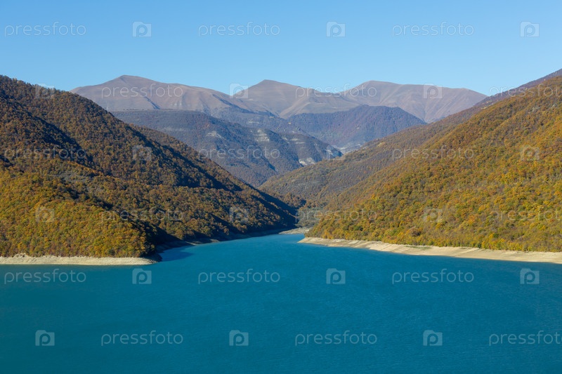 Жинвальское водохранилище - искусственное озеро, расположенное на реке Арагви в горах